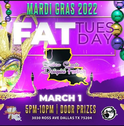 FAT TUESDAY - March 1, 2022 - National Today Fat Tuesday –. March 1, 2022. Fat Tuesday or ‘Mardi Gras’ is on the Tuesday before Ash Wednesday and at the start of Lent. We’re making sure that you have the time of your life during this week-long period of festivities. The origins of Mardi Gras link back to pagan celebrations of the arrival of spring and fertility, such as the Roman ...